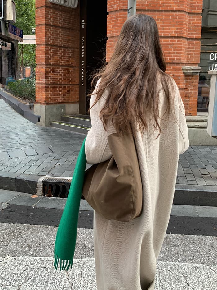 ストレートラインのロング丈で、自然に縦のラインを強調。ゆるっとしたシルエットが体型をカバーし、すっきり見えを叶えます。