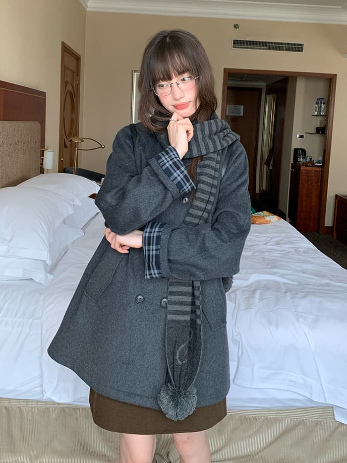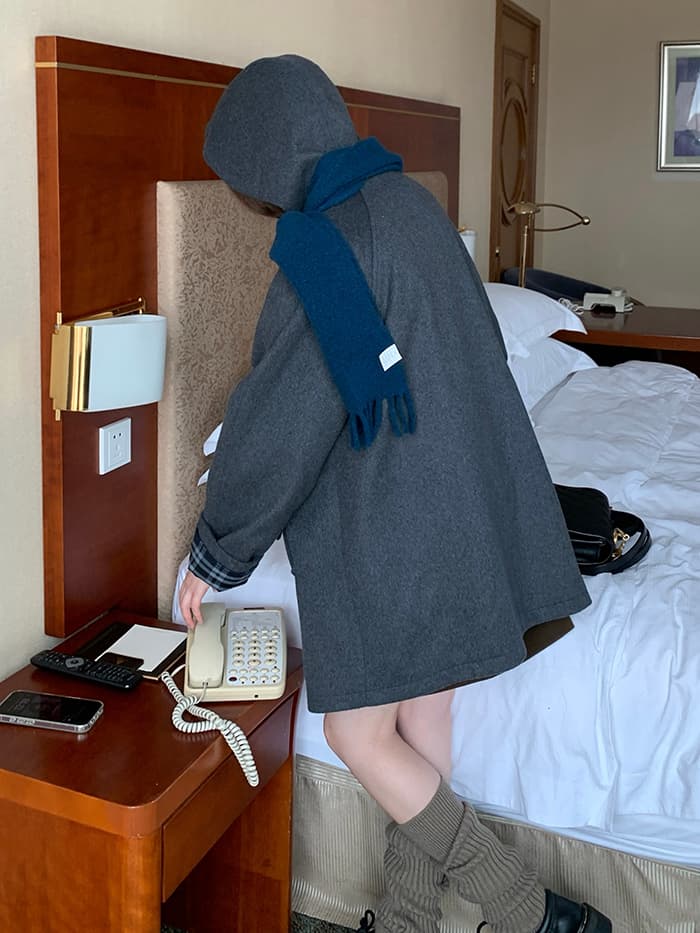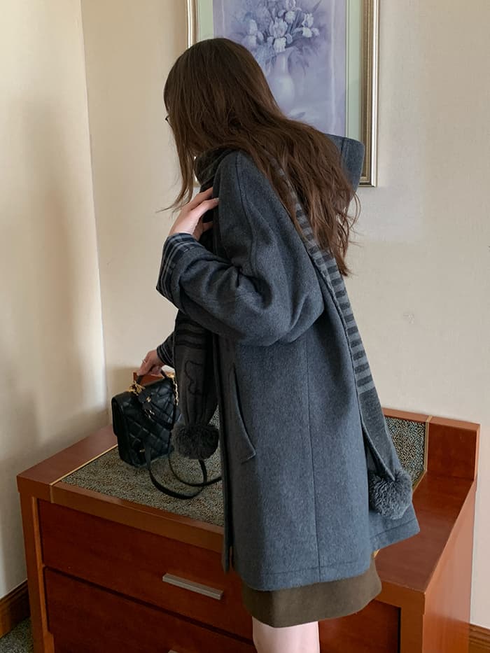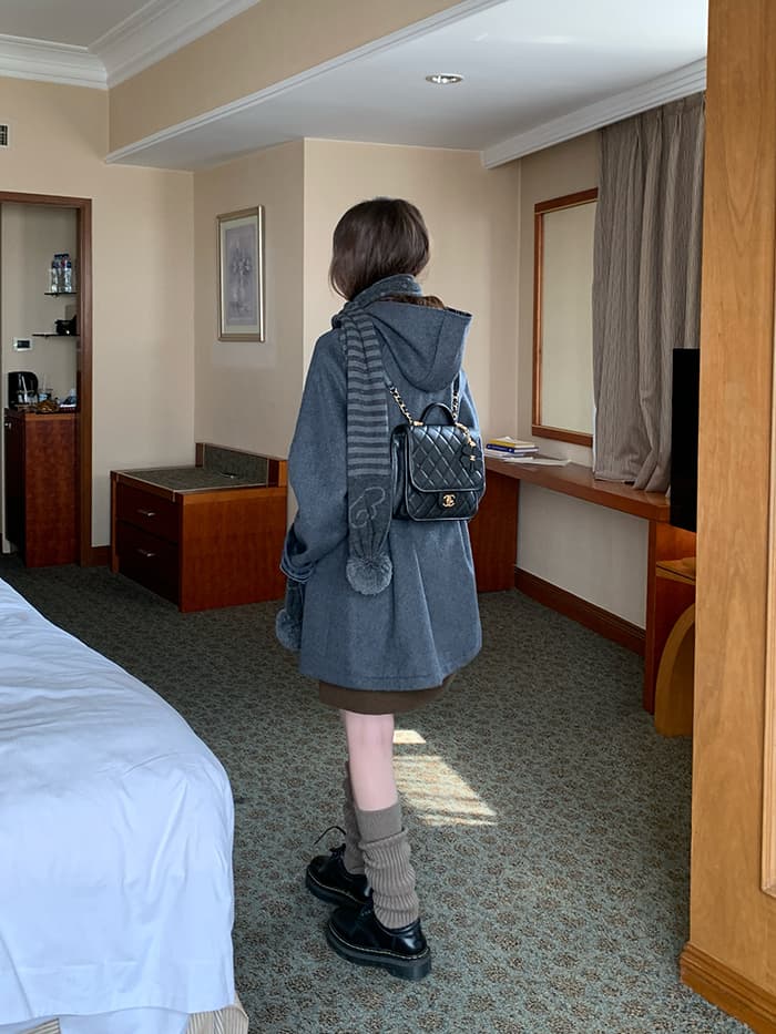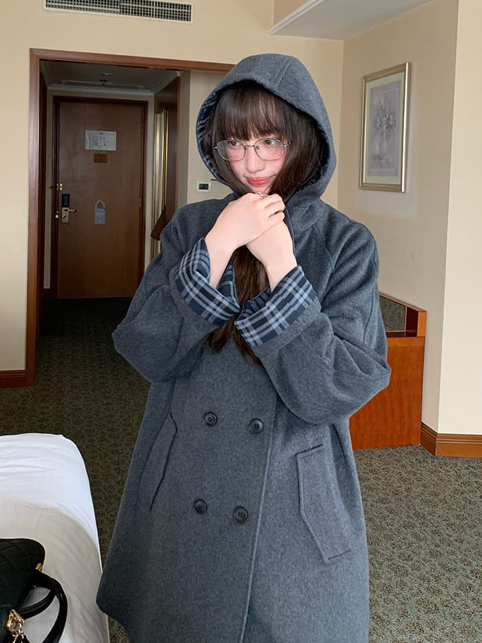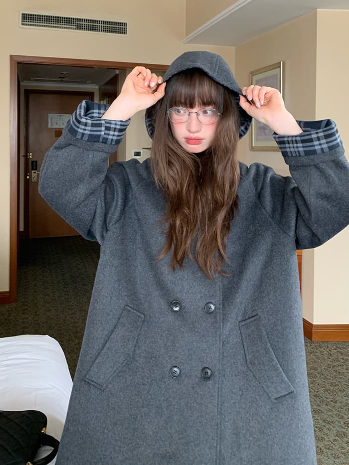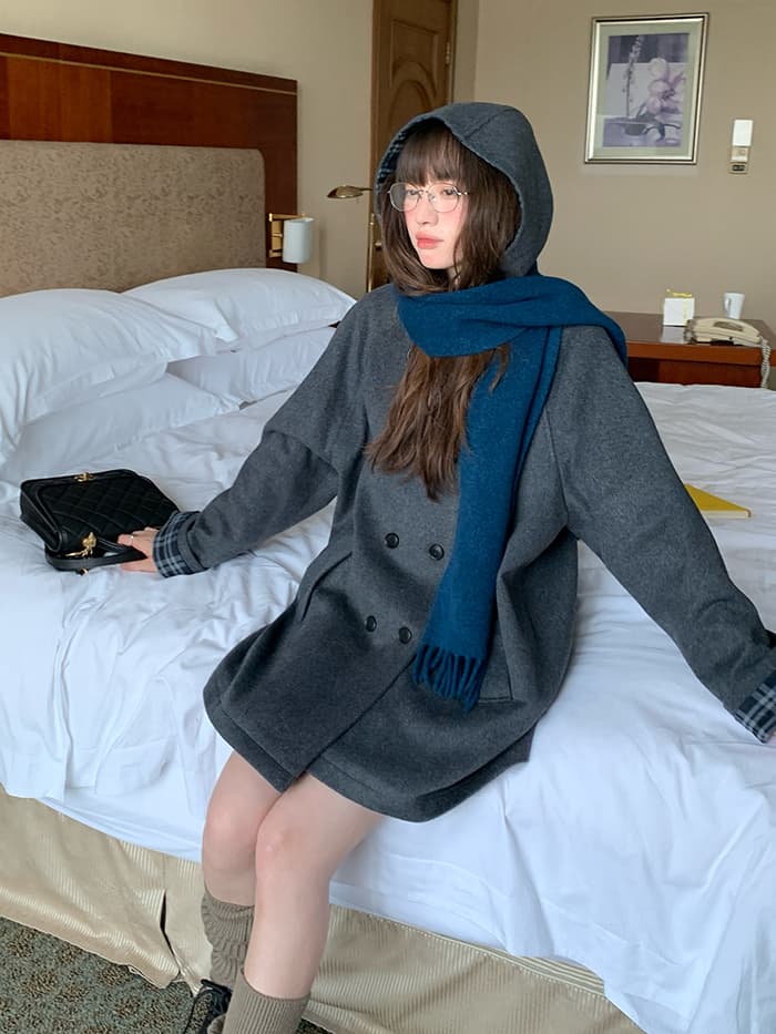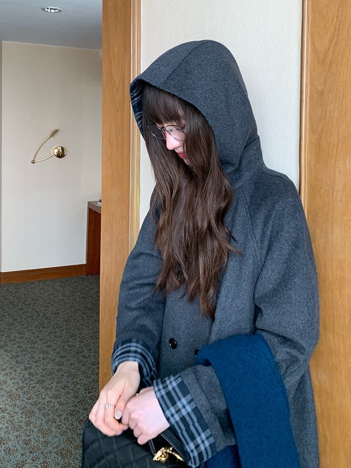 立体感のある三枚仕立てのフードは頭の形にフィットしやすく、かぶると小顔効果も◎。