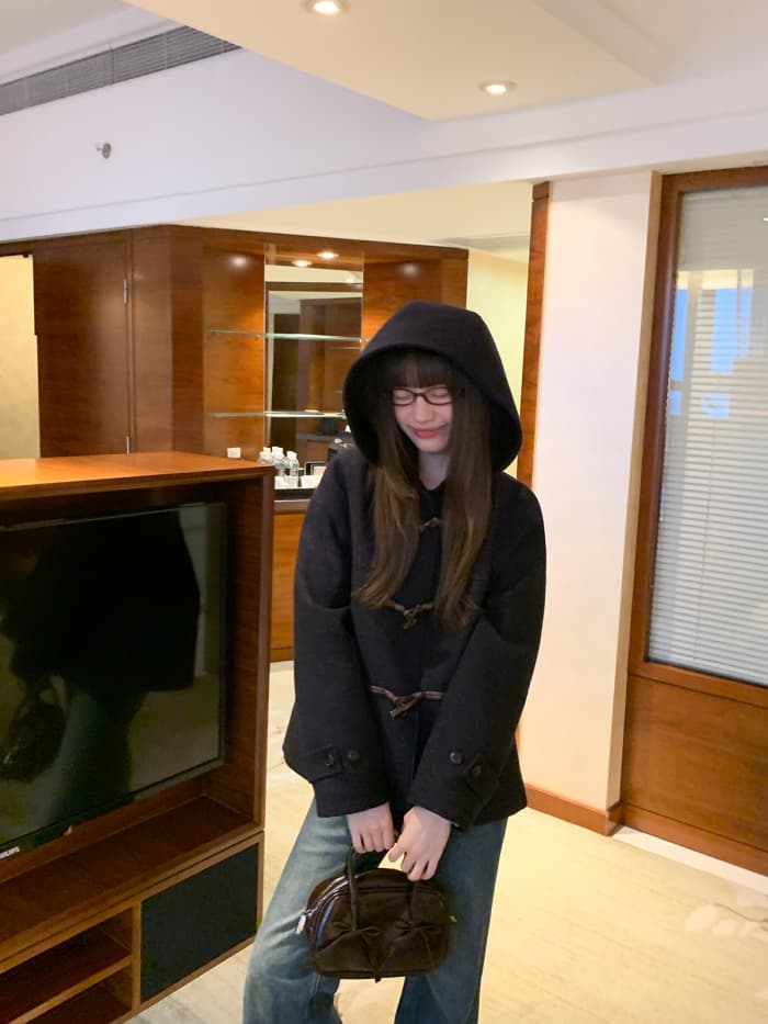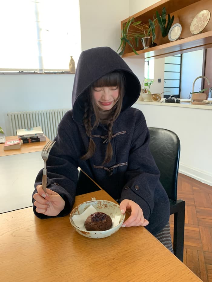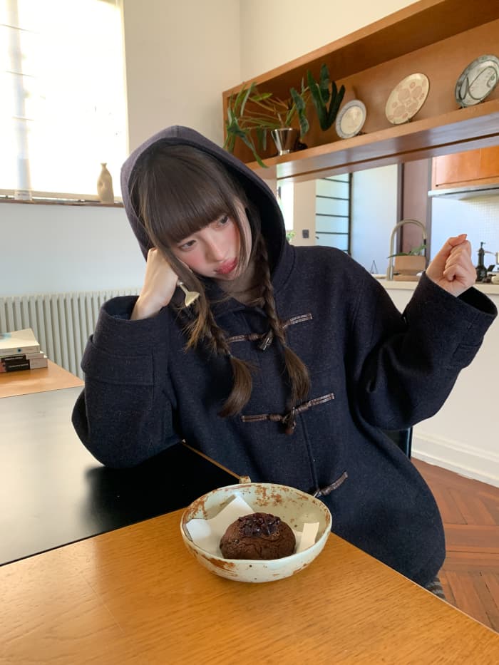 フード付きのデザインで、カジュアルさと可愛らしさを両立。