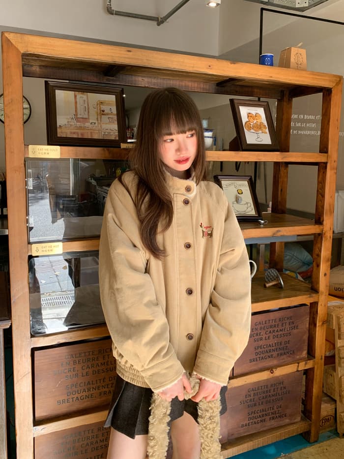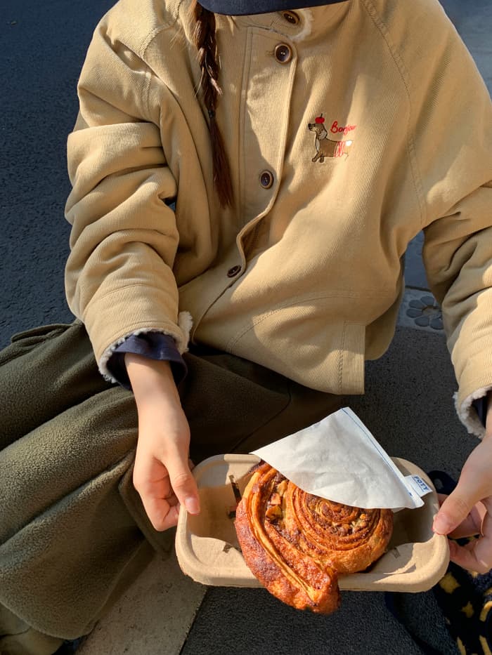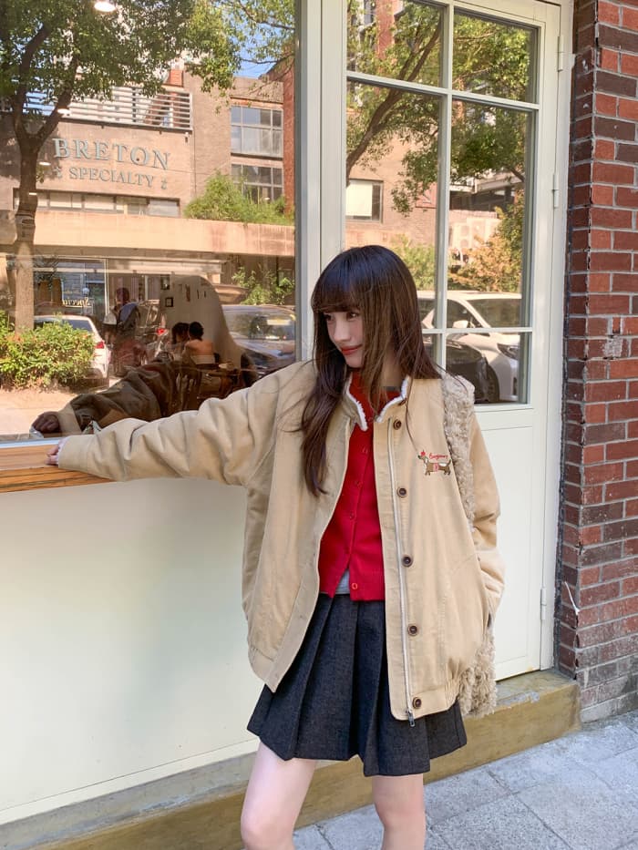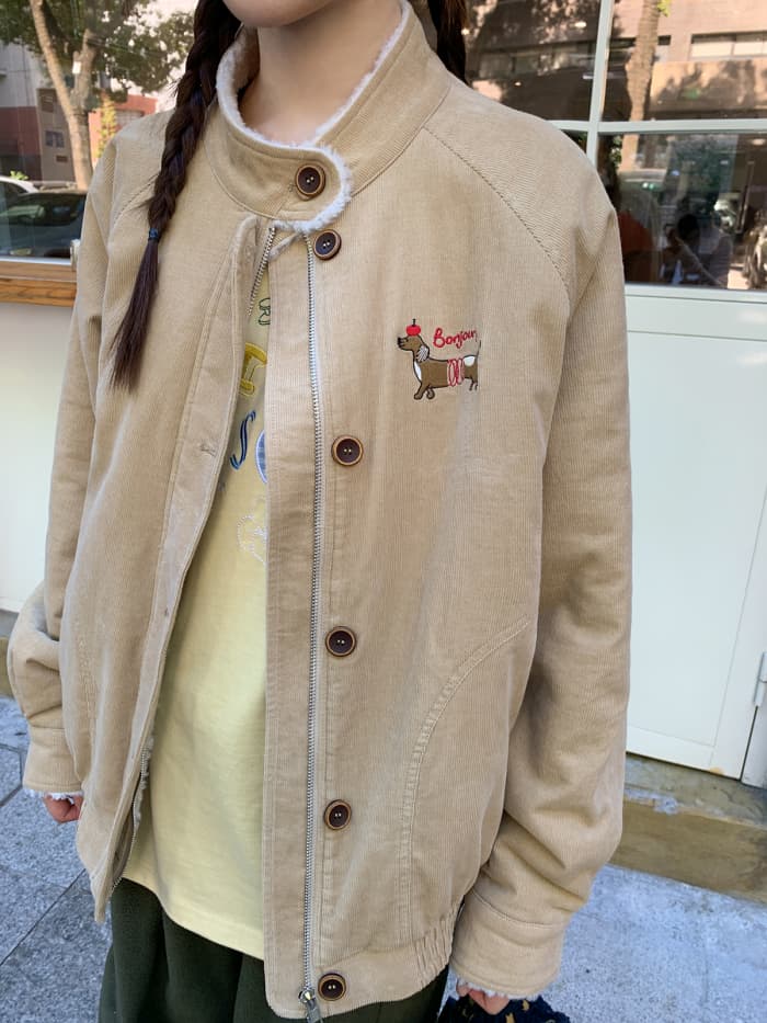 秋冬ムードたっぷりのコーデュロイジャケット。