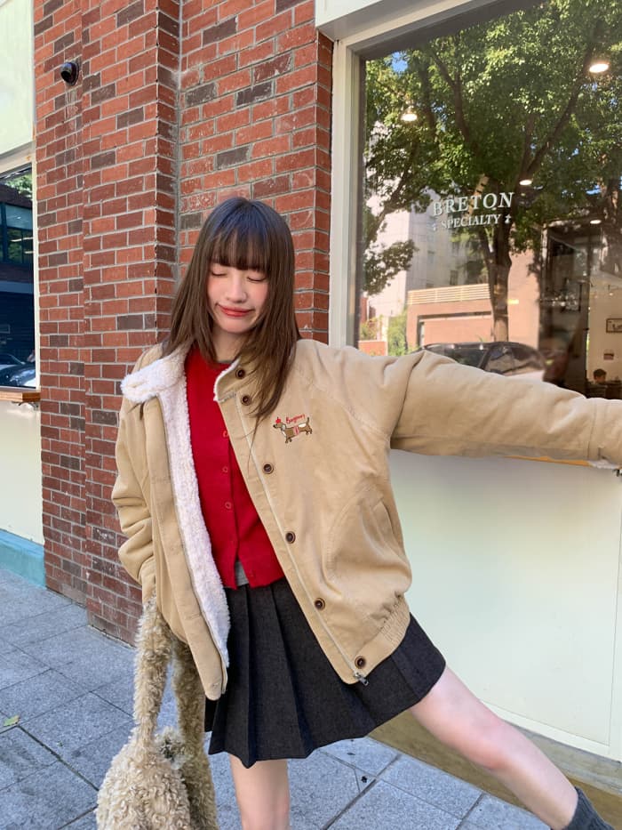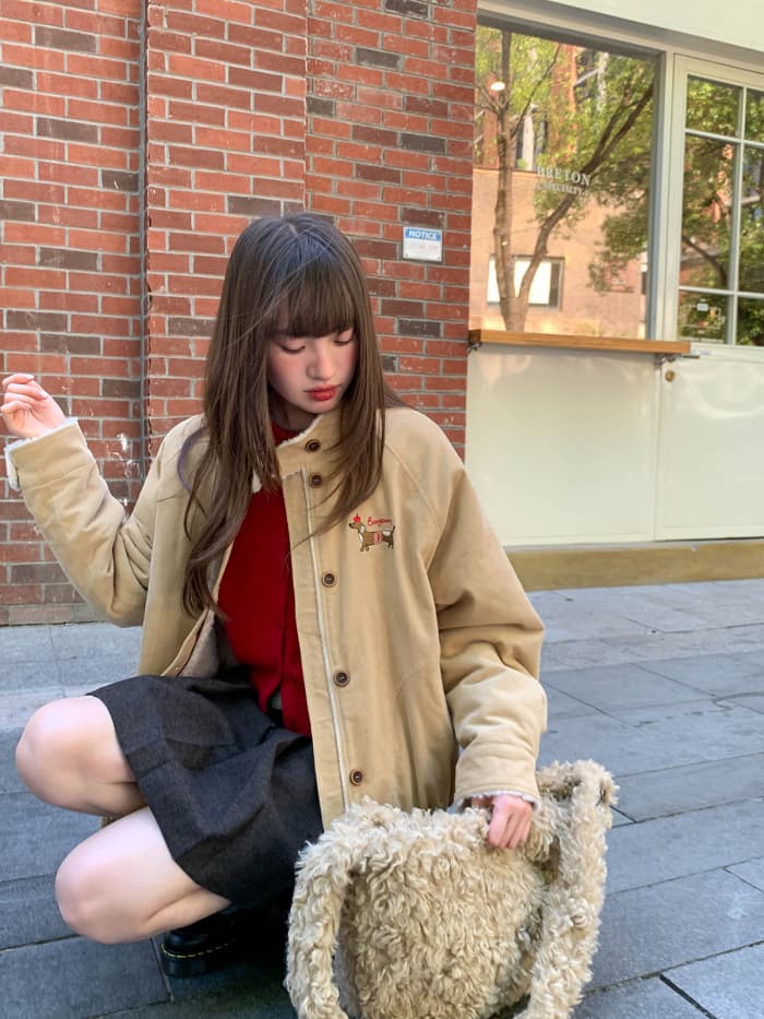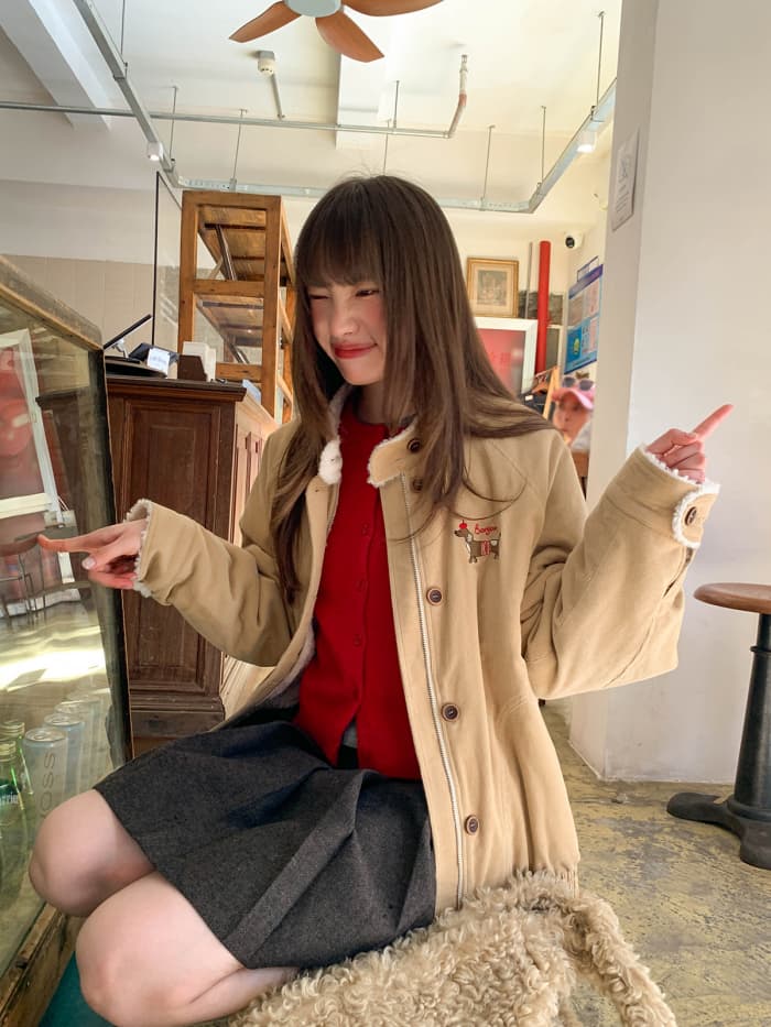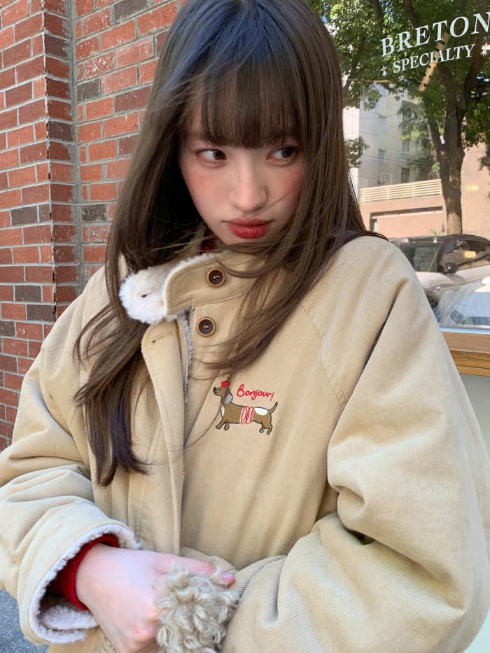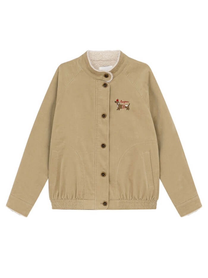 胸元には小さな犬の刺繍をオン。遊び心と可愛さをプラスして、見た瞬間に気分もアップ。