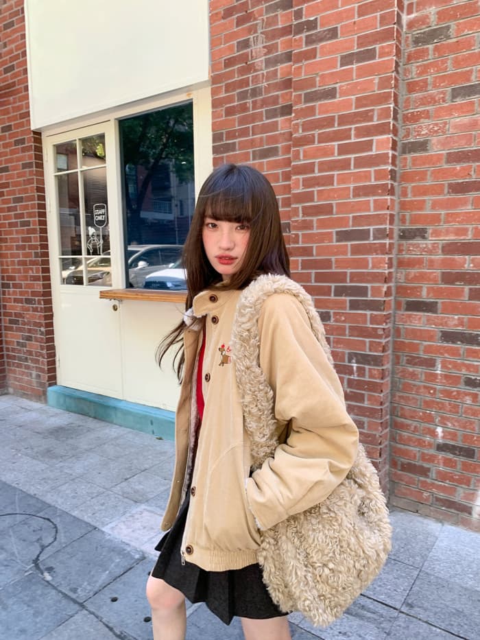 裏にはボアを使用。ふわふわの肌触りで保温性抜群。